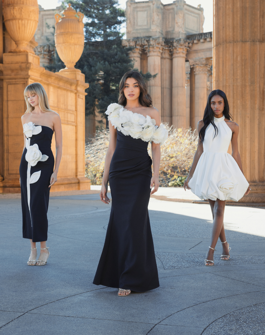 Ivory Embellished Column Gown Velvet Bow Belt - Oyster Black