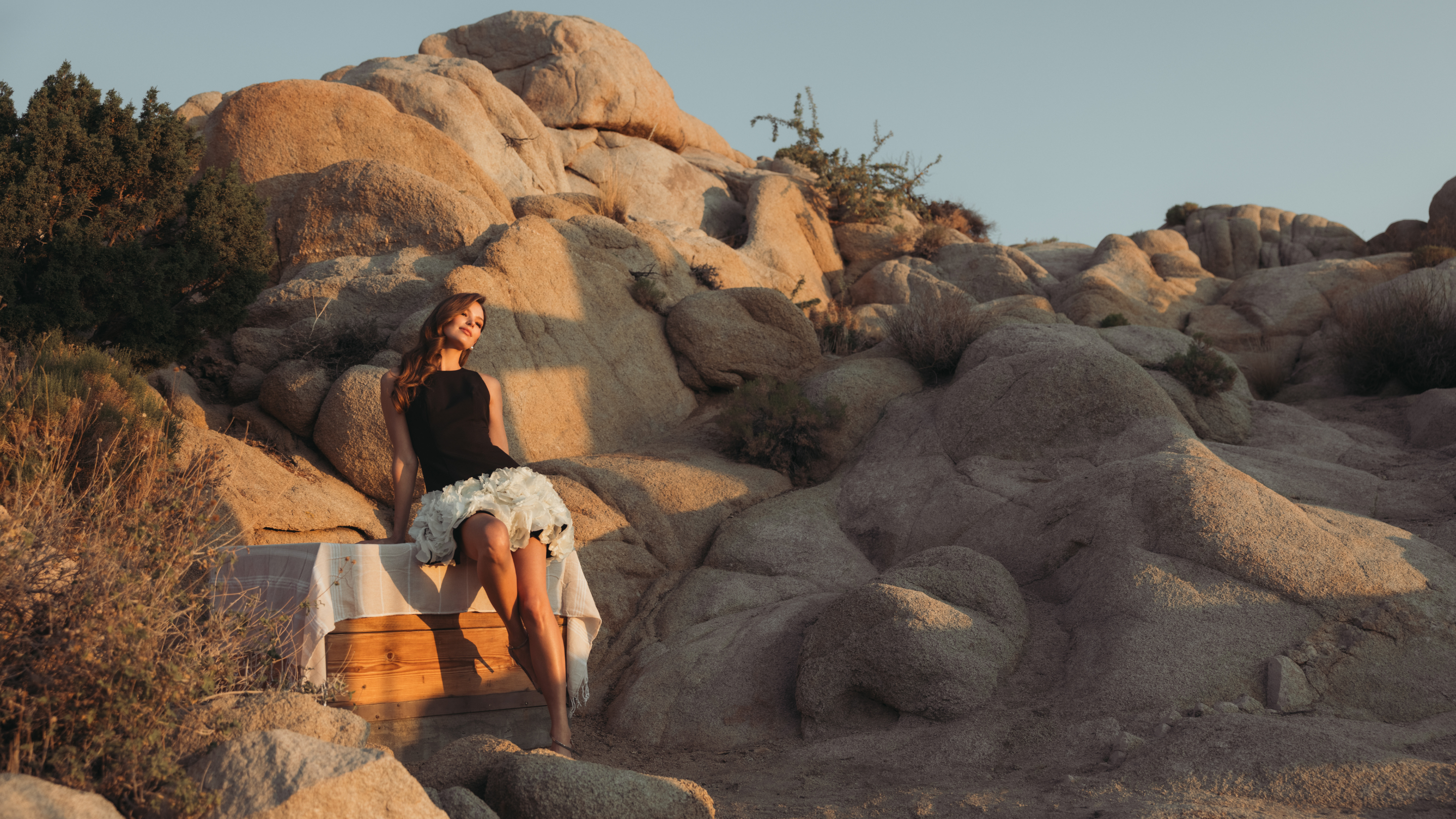 Jersey Halter Gown with Feather Tiered Detail - Black