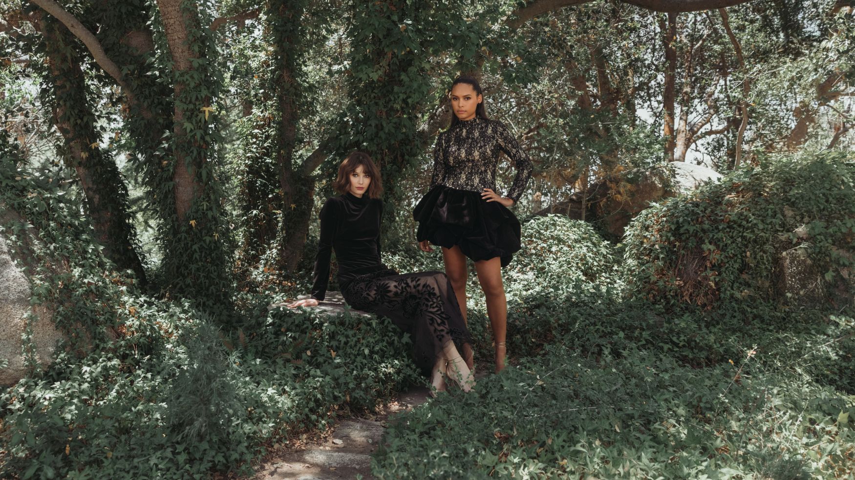 Ivory Embellished Column Gown Velvet Bow Belt - Oyster Black