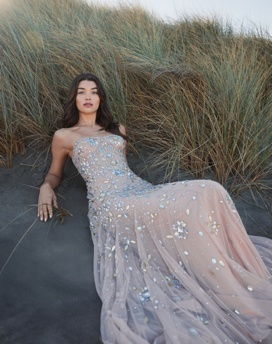 Strapless Embellished Tulle Mermaid Gown - Porcelaine